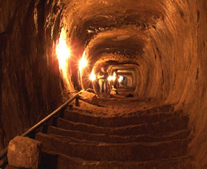 На дне нижнего зала были вскрыты две больших водосборных ванны, а на стенах обнаружены ниши для светильников. К нижнему уровню пробита наклонная галерея-лестница длиной более 100 м (фото 2). Высота галереи от 1,8 до 2,2 м при ширине от 1,8 до 2,4 м.